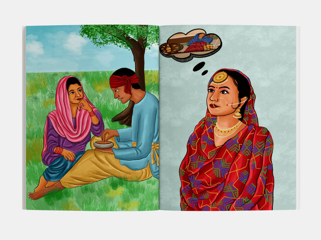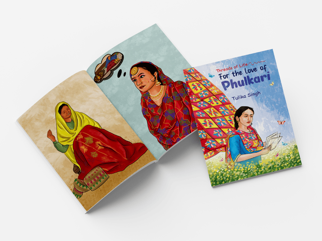 A young girl’s journey into her own heart. Walking on the footprints of time, and holding her grandma’s hard Ladoweaves the colour of love.